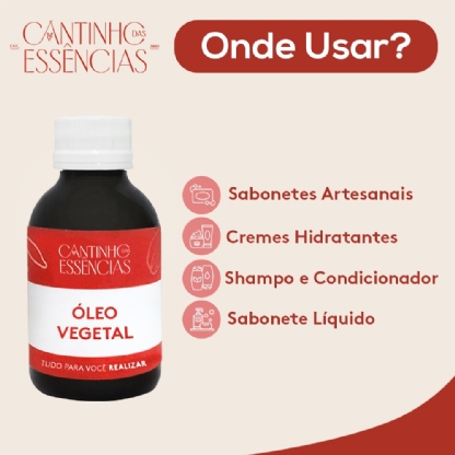 Os óleos vegetais possuem diversos benefícios para pele e cabelos. Sua principal função é hidratação e regeneração da pele. Podem ser usados em diversas formulações como sabonete em barra, óleo de banho, creme hidratantes, condicionares, demaquilantes, entre outros.