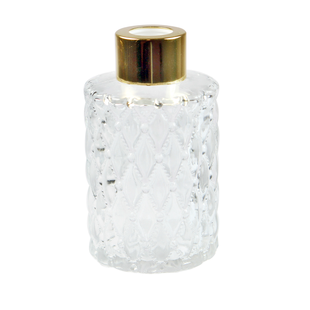 O vidro acompanha a tampa furada plástica com revestimento metalizado, indicado para envase de aromatizadores de ambiente de vareta.